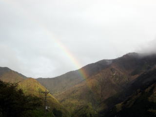 二日の夜中に雨が降り朝には雨が上がり アミティーズを迎えてくれる虹 |