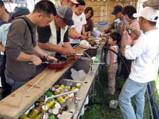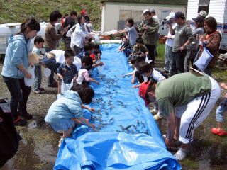お昼も回り皆さまでニジマスのイベントが 始まりました・こどもたちもつかみ取りを 楽しんでおりました |